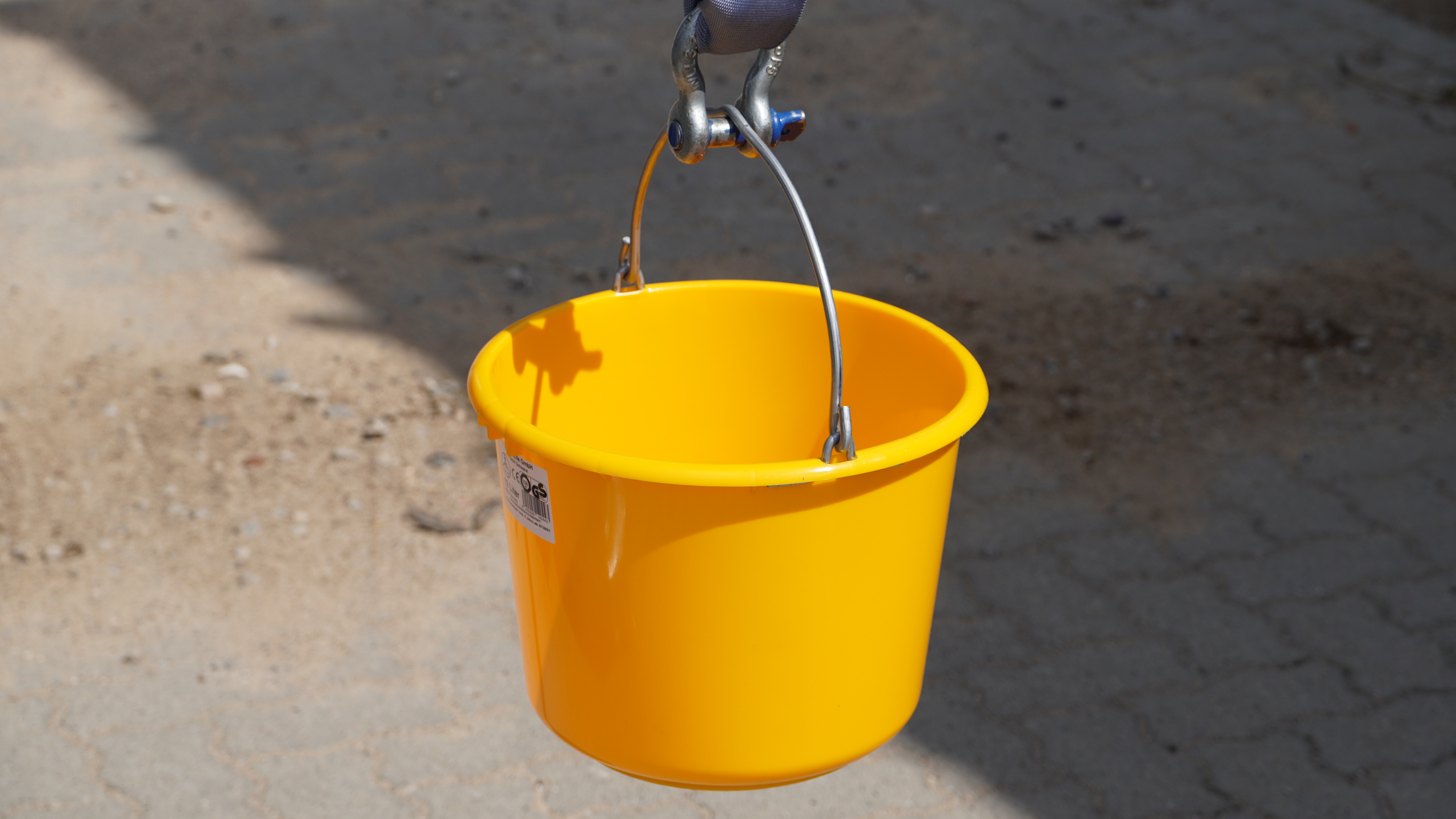 TÜV-geprüfter, kranbarer 12-Liter-Baueimer mit hoher Tragkraft – robust, vielseitig einsetzbar.