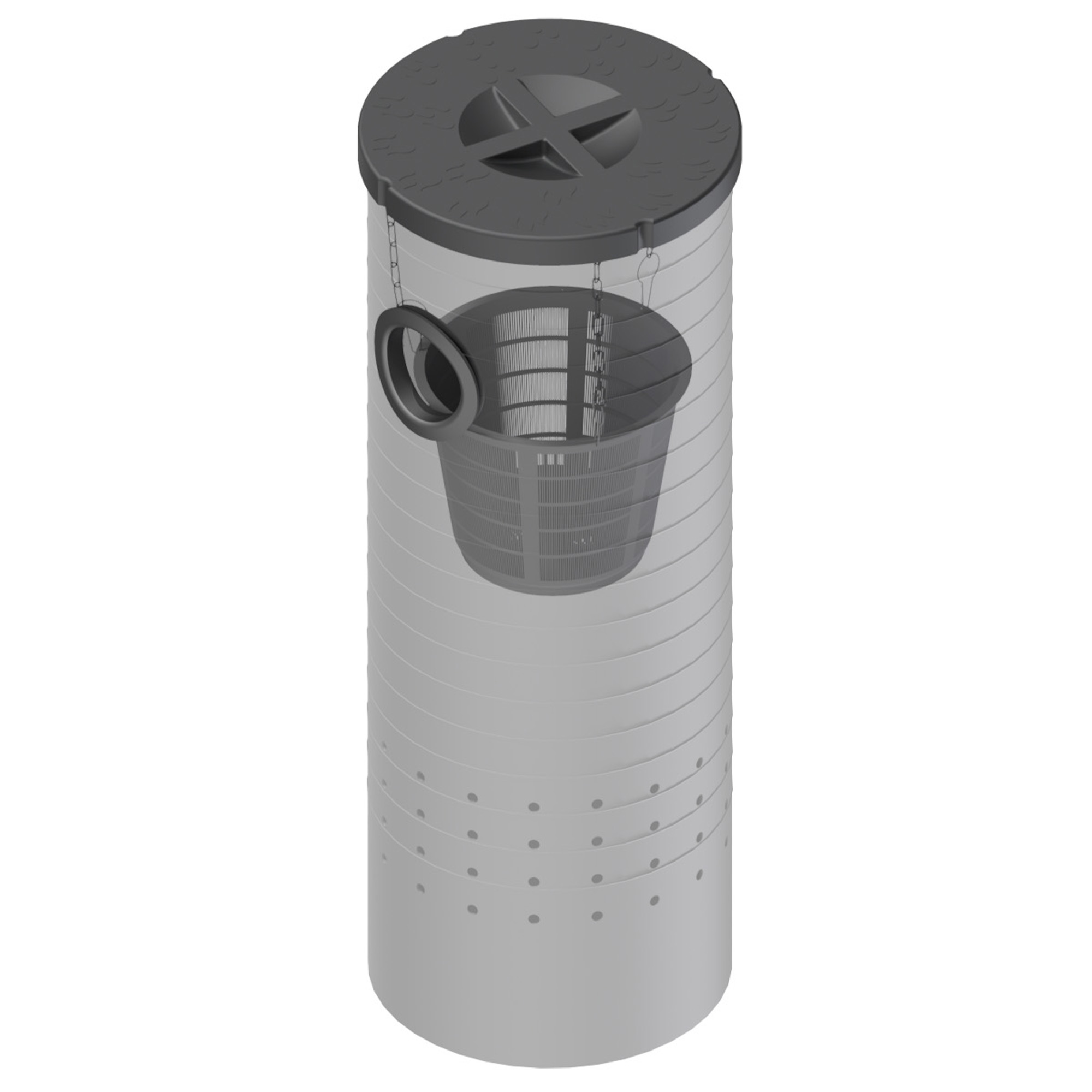 Der Sickerschacht 140 l eignet sich für die Rückhaltung, Versickerung und Entwässerung von Regenwasser. Der Zulauf in den Sickerschacht ist mit einer Gummilippendichtung DN 100 vorbereitet. Das einlaufende Regenwasser wird über einen im Schacht abgehängten Grobschmutz-Filterkorb gefiltert. Der Sickerschacht ist einfach zu warten, zu inspizieren und zu reinigen.