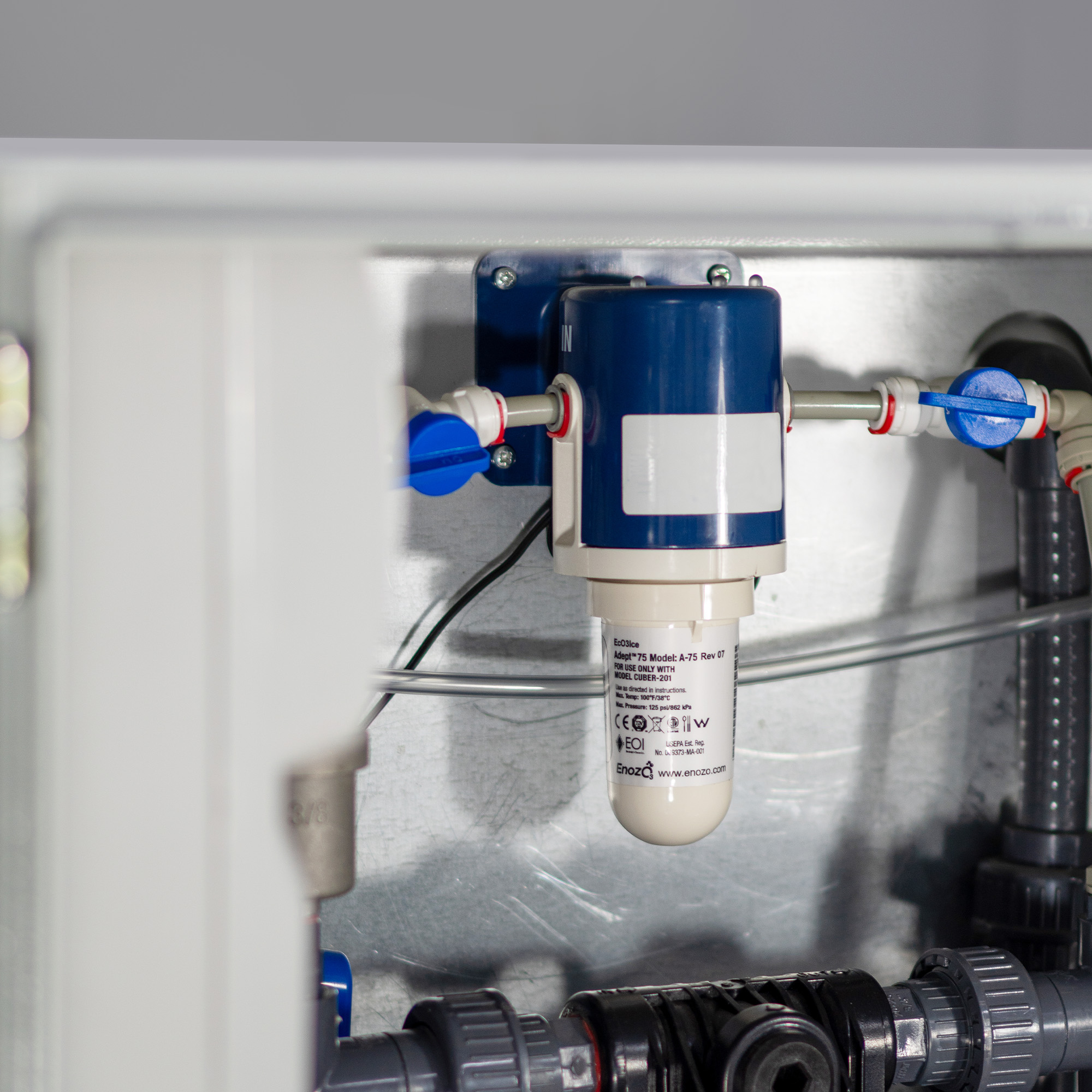 Ein elektrolytischer Ozongenerator reichert das Wasser mit Ozon an.